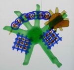 John creates art from recycled glass, mostly bottles and mirrors but also old windows and plate glass. John focuses on translucence, shadows, reflections, textures and transparency using a limited palette. He plays with shapes, slumping and fusing the glass, working with a kiln, a wet saw and hand tools. Commissions welcome.