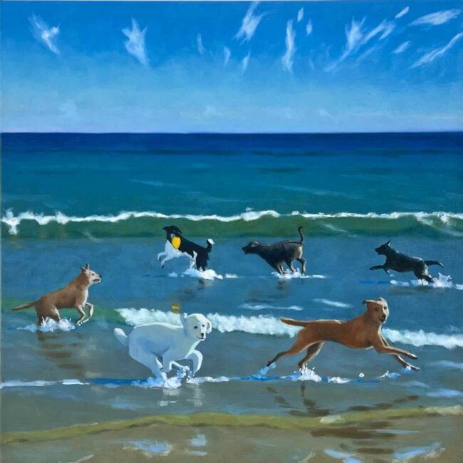 At the same time I am putting the finishing touches on the fourth and final painting for “The Dog Days of Summer” show at Boston Children’s Hospital, showing June through late September.  This is a two person show with photographer Ron Schmidt, curated by Christina Godfrey.  “Artists Rob Diebboll and Ron Schmidt exhibit art focused on our canine friends enjoying summer fun while our patients showcase artwork inspired by their favorite pet dog.”